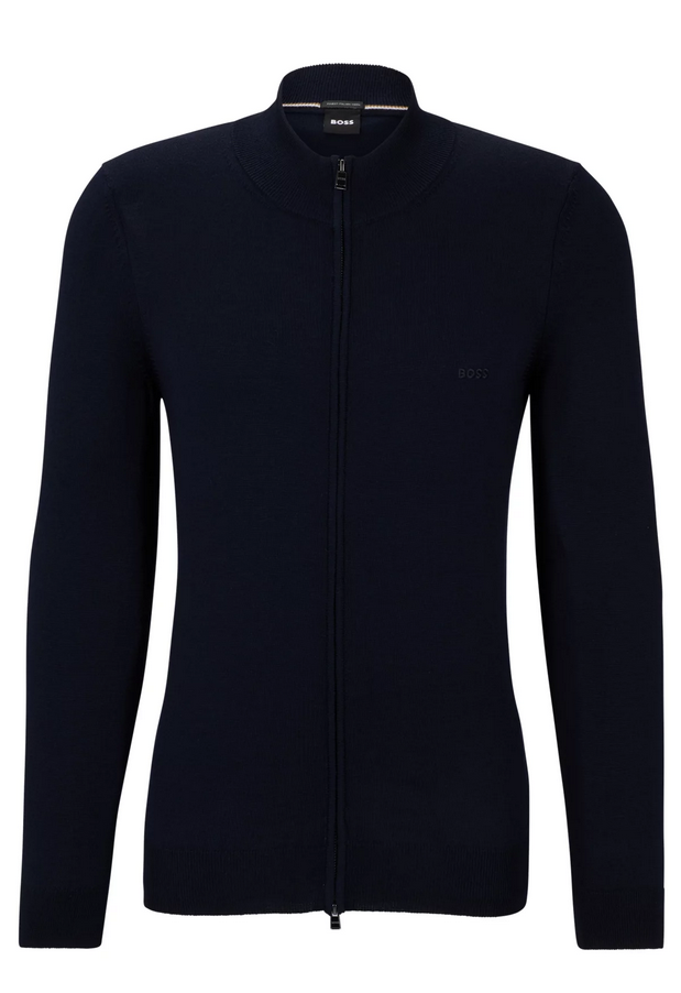 Un cardigan pratique, signé BOSS Homme. Arborant une coupe Regular Fit et une fermeture éclair sur le devant, ce cardigan très doux est orné d’un logo BOSS brodé sur le côté gauche de la poitrine et de rayures emblématiques à l’intérieur du col. Pour nos articles ÉCO-RESPONSABLES, nous utilisons toujours au minimum 60 % de matières premières plus durables. Cet article est confectionné avec de la laine d’origine responsable et certifiée. Pour nous, un vêtement d’origine responsable signifie qu’il a été produit sans recours au mulesing et dans le respect des Cinq Libertés pour le bien-être animal.