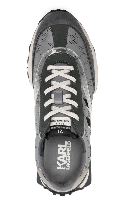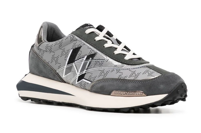 Baskets Zone en cuir Gris, cuir de veau, logo brodé sur le côté, design perforé, fermeture à lacer sur le devant, languette à patch logo, bout rond, contrefort contrastant griffé, semelle plate en caoutchouc.
