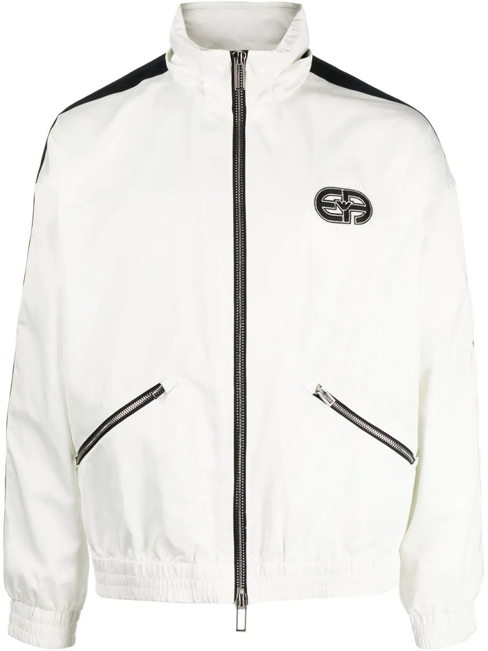 Modèle bicolore, logo imprimé à la poitrine, col roulé, fermeture zippée devant, deux poches zippées, manches longues, poignets élastiqués, ourlet élastiqué.