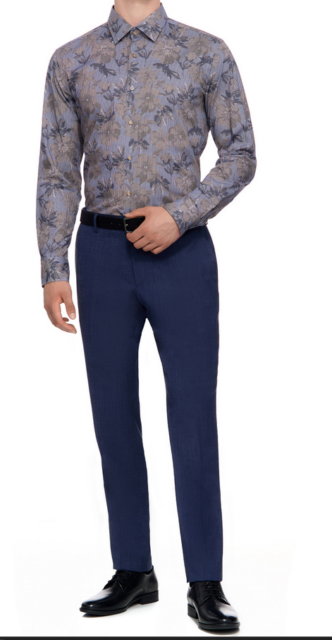 Une chemise business Slim Fit en popeline de coton stretch à carreaux ornée d’un motif à fleurs moderne, signée BOSS Homme.
