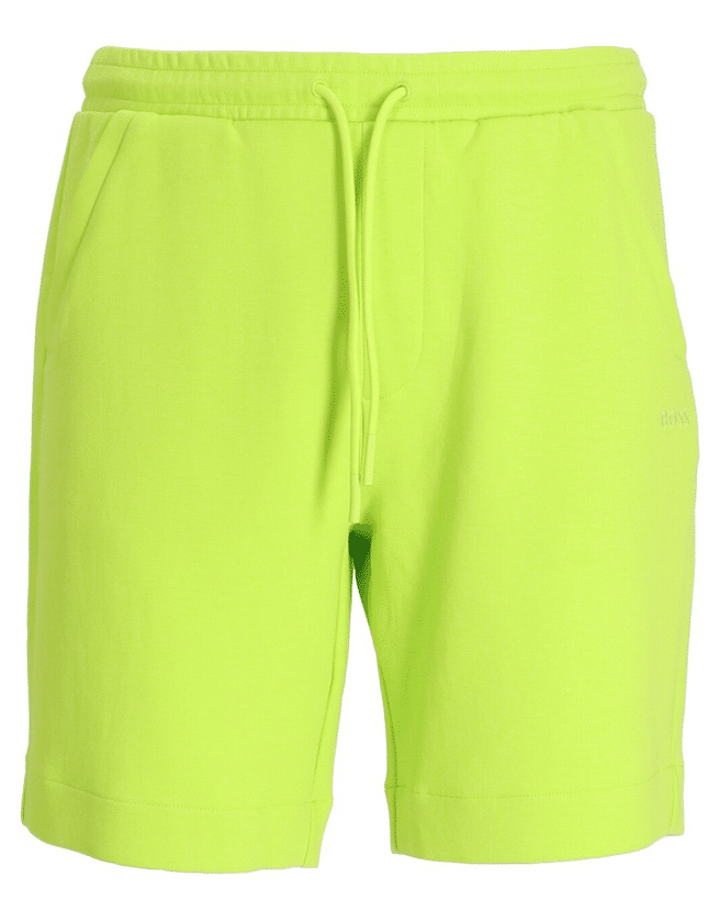 Un short BOSS Homme Regular Fit en coton mélangé, orné des logos multicolores et d’embouts de cordon de serrage coordonnés à la taille.